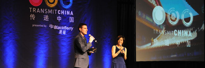 Photo: transmitCHINA 2011 General Co-Facilitators - Eric Garland, CEO, BigChampagne and Kelly Cha, Host of ZhaZhaClub Show