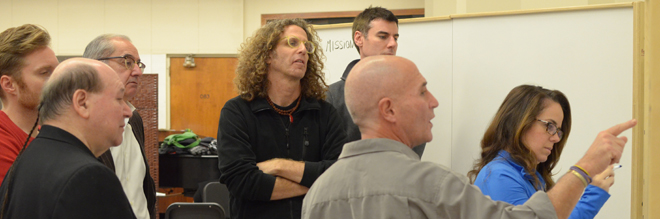 Jonas Woost, Paul Hoffert, Richard Stursberg, Omri Dolev, David Ben Kay, Eric Garland and Angel Gambino at the TI Summit at U of T in November, 2011.