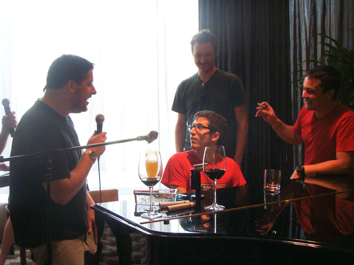 In the early afternoon following a massive lunch, a large group congregates at Zenbar for a spirited sing-along around a grand piano. The Zenbar staff are thoroughly amused and provide microphones for the occasion. Soon after, the gents are puffing on cigars, the Prosecco is flowing, and transmitCHINA's photographer, Tobyn Ross, is belting out the tunes alongside illScarlett's John Doherty and Alex Norman, as Anthony Carone tinkles the ivories. Doherty seems to know the words to every song written by Billy Joel and manages to get the entire group singing on a lounge rendition of "Band On The Run" by Paul McCartney & Wings as well as Queen's "Bohemian Rhapsody." We spend more than five hours on the third floor of the Sheraton hotel and illScarlett are endlessly entertaining – even on their day off.