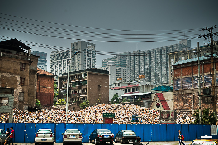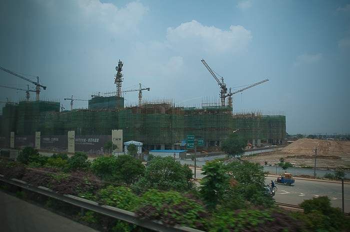Like Guangzhou, Changsha is one of China's major industrial and commercial centres and signs of the city's massive growth and development are everywhere – large industrial buildings in the outlying areas of the city, massive consumer markets, fields of construction rubble, buildings enclosed in scaffolding, chaotic traffic and heavy pollution. Changsha feels like a massive metropolis and even after the tour bus enters the city, we are driving for more than 40 minutes.