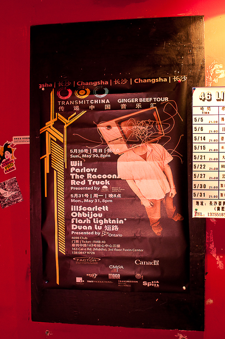 Back at Changsha Live House 4698, Wil, The Racoons and Parlovr are ready to take the stage. In comparison to Guangzhou's lofty venue, 4698 is a much more intimate night club environment. Fans surround the stage but also sit at small tables covered in checkered tablecloths and tall stools at the tiny bar at the rear of the club. At the shows in Changsha, the performances from the Canadian bands will be interspersed with local talents for the first time – tonight the local act is Red Truck.