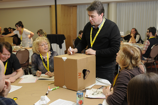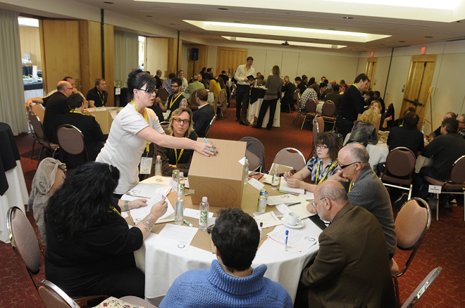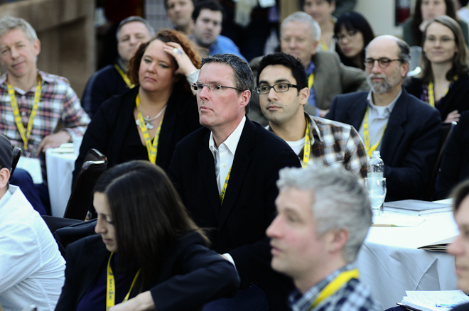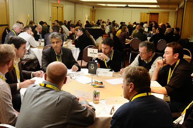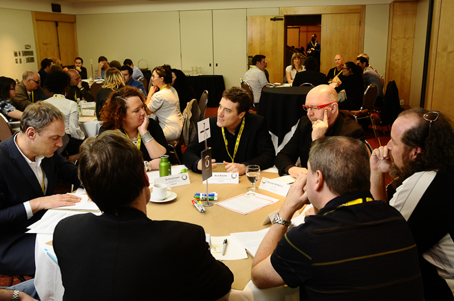Across 15 individual tables, delegates are matched up with people they may or may not know. We’re given an assignment and let loose to share our various perspectives.