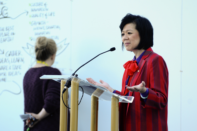 10:43 AM – After hearing from the Honorable Ida Chong, Minister of Science and Universities for the Province of British Columbia, and from Tyl van Toorn, Co-founder and Executive Producer for transmitNOW, who promised to keep his talk to four minutes or less (it was six, I timed it), we are introduced to The Value Web.