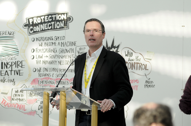 2:25 PM – transmission translates to a good feed – and after an amazing lunch there is not just a little grumbling about stealing away to have a nap somewhere. The urge settles though when Eric Baptiste, CEO of SOCAN takes the podium.