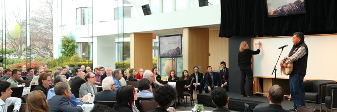 From the outside looking in, this year’s transmission: GLOBAL SUMMIT (TGS 2012) didn’t appear different from the one held in the exact same location roughly one year ago. There were familiar faces. The tables in the banquet room/auditorium were laid out in much the same way. Founder and CEO, Tyl van Toorn, looked slightly disheveled but composed, his hair frantic from being pushed back ten thousand times while making ten million decisions leading up to launch. And a delicious scent of croissants, eggs and bacon wafted through the air upon arrival.