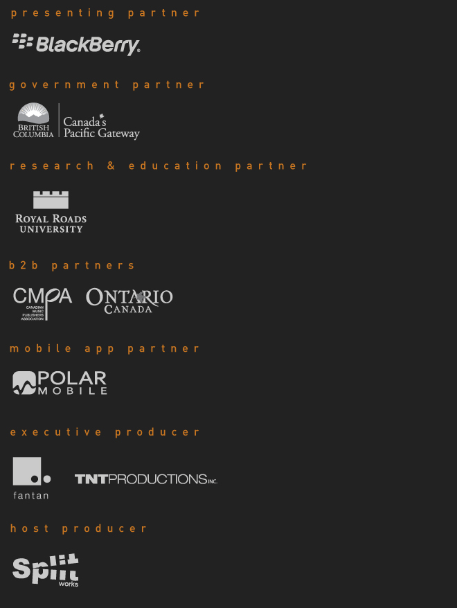 - 150 hand-selected delegates representing the international content and creative industries. Visionaries like: Catherine Leung, General Manager of Music & Entertainment at Baidu; David Ben Kay, Chairman of Yuanfen~Flow; David Neale, Office of the CMO, BlackBerry and Si Shen, CEO & Co-founder of PapayaMobile.
